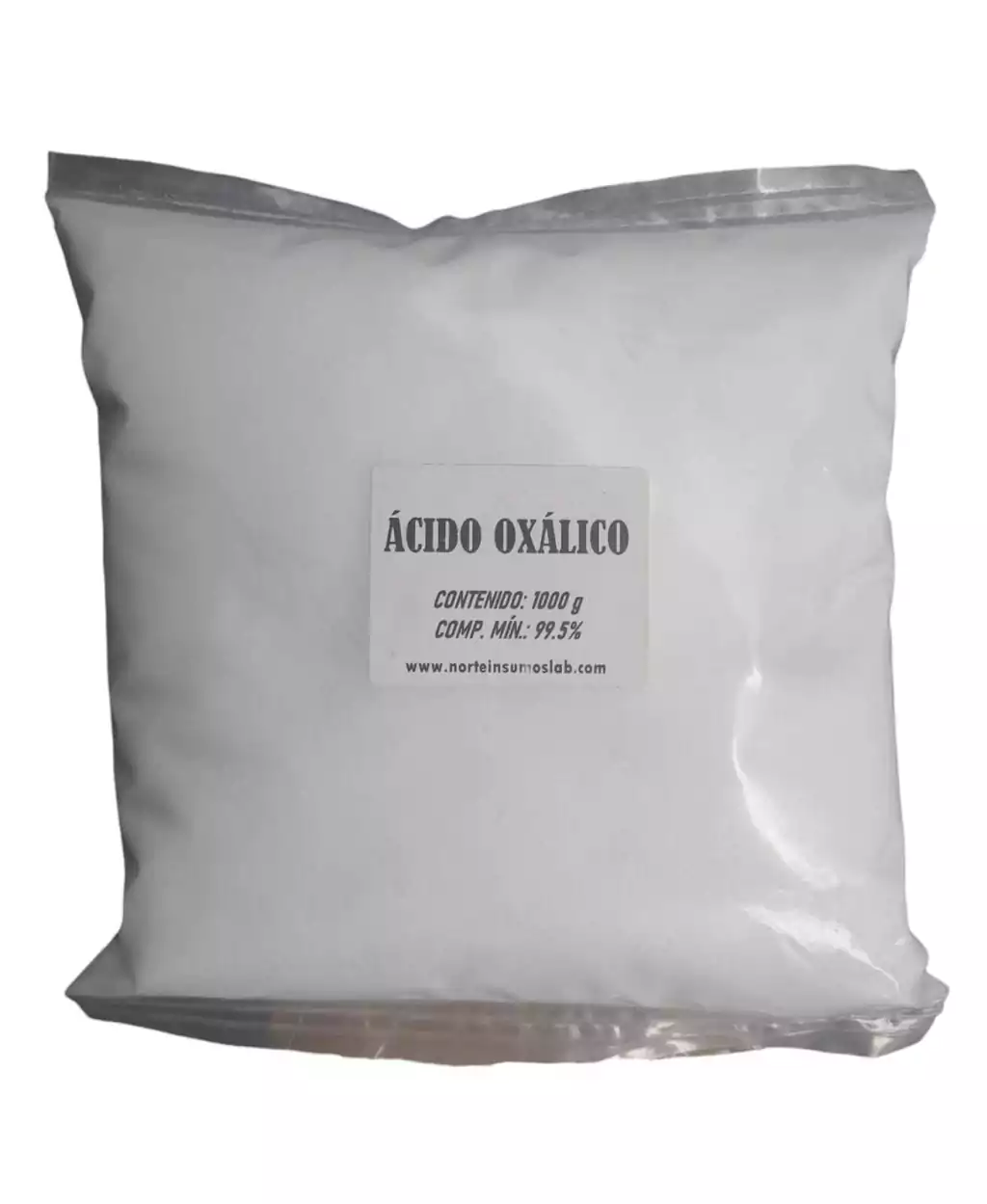 Acido orgánico saturado, fuerte. Soluble en alcohol y agua, cristaliza en el agua en forma deshidratada cuya fórmula es C2H2O4.2H2O.